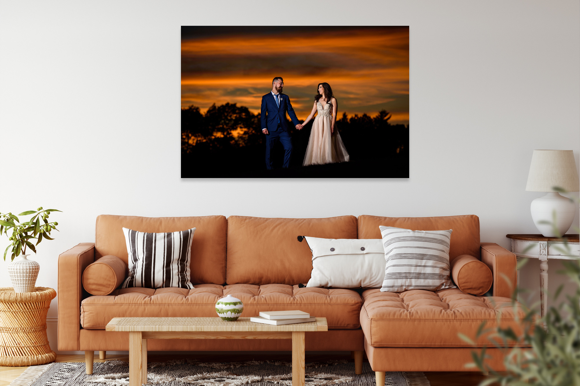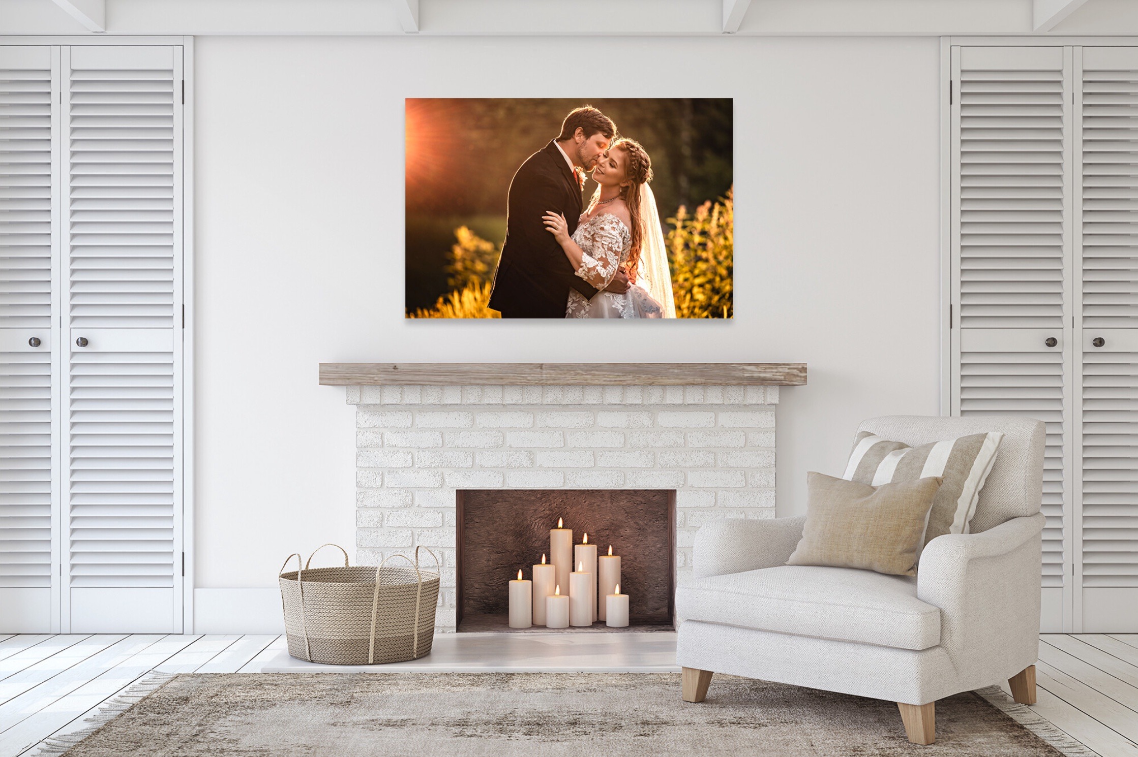 Gallery-wrapped canvases are a luxurious and contemporary way to display your favorite images from your wedding. Canvases arrive ready to hang, no framing required.
